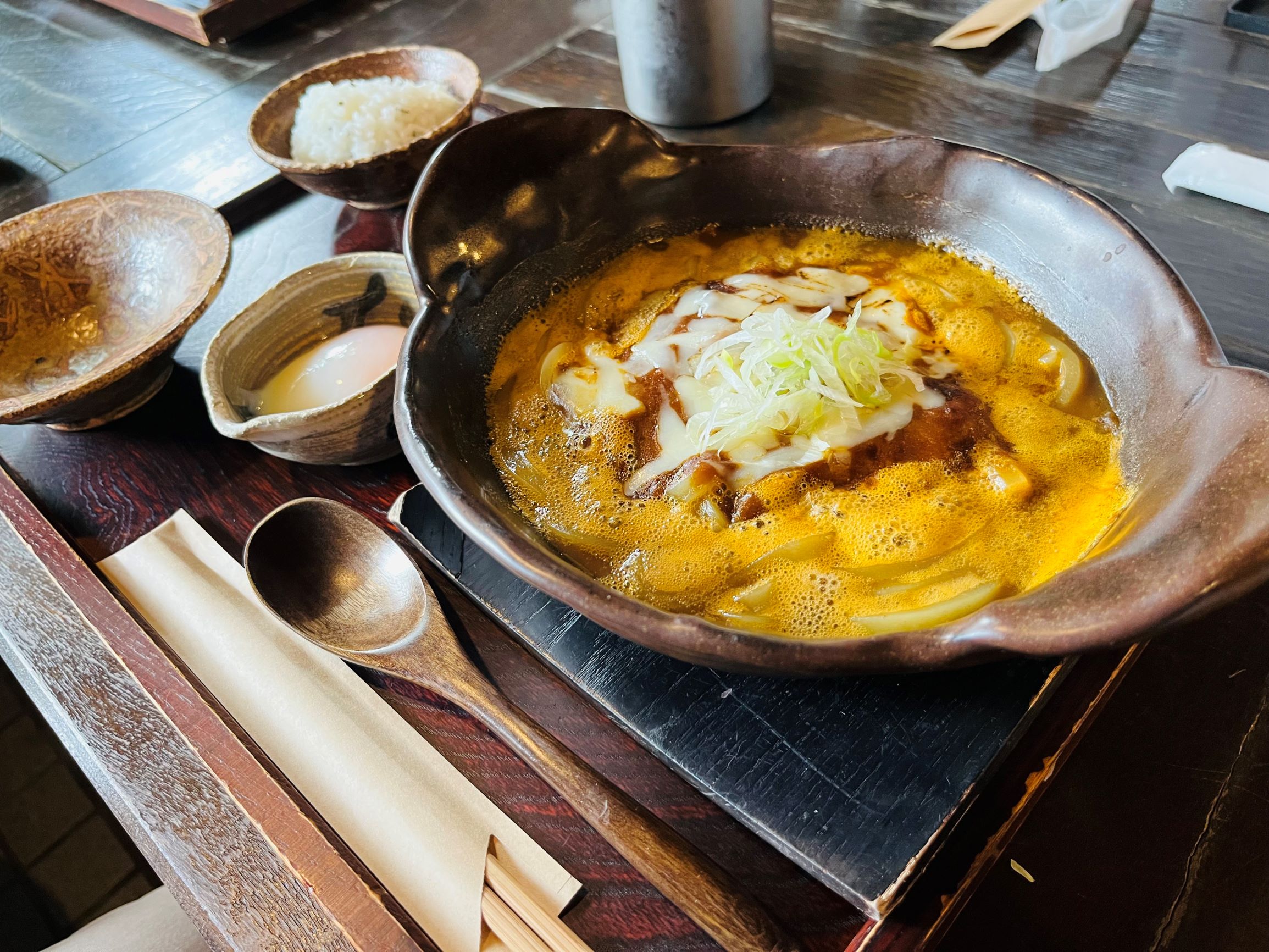 昼食は常滑焼の器で味わう名物「土鍋カレーうどん」とSNSで話題の常滑牛乳による特別ランチをお召し上がりいただきます。