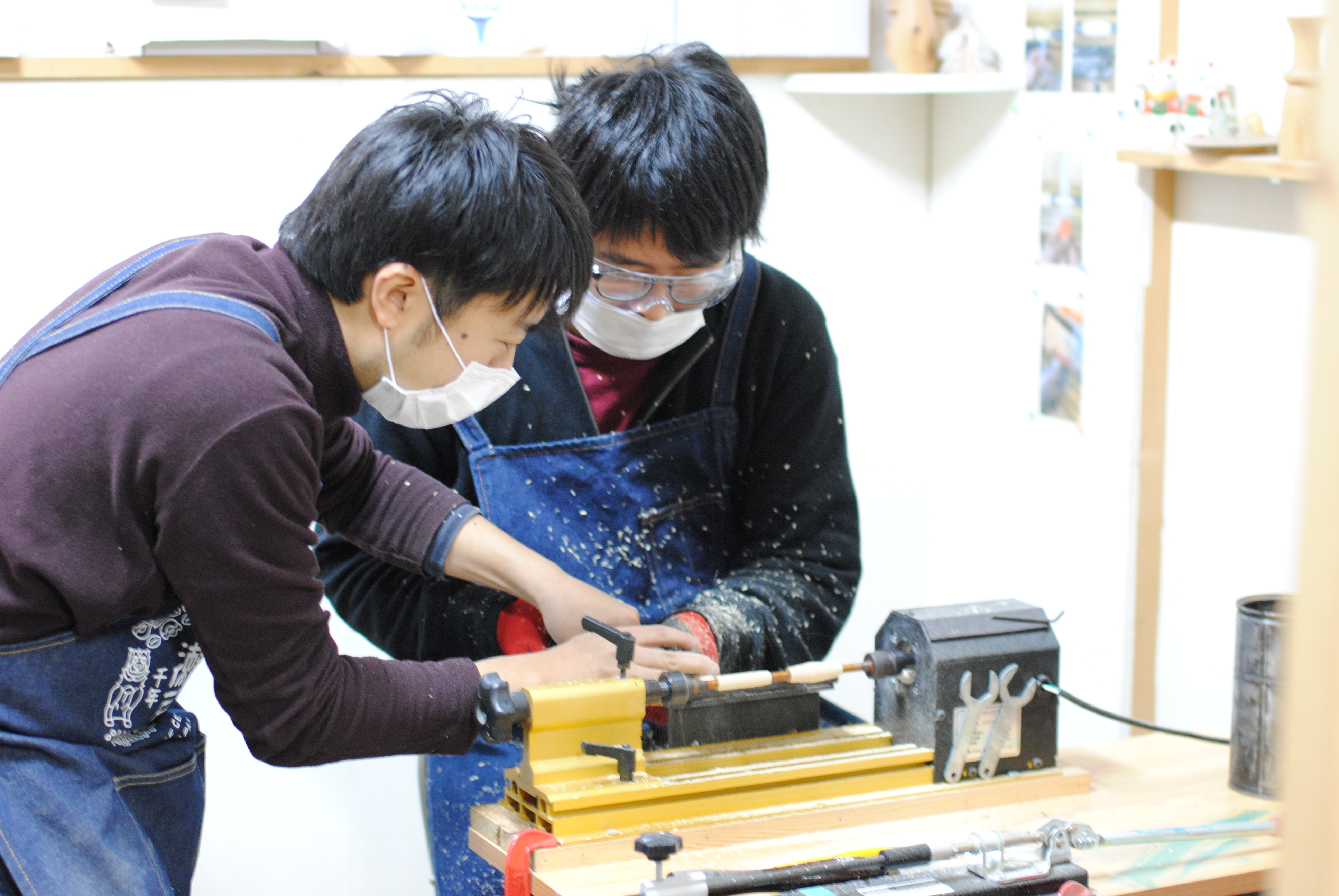 森の整備のために伐採された木材を使ってものづくりする小さな工房「わたり工房」を見学、木工職人が「木」の魅力をご説明いたします。